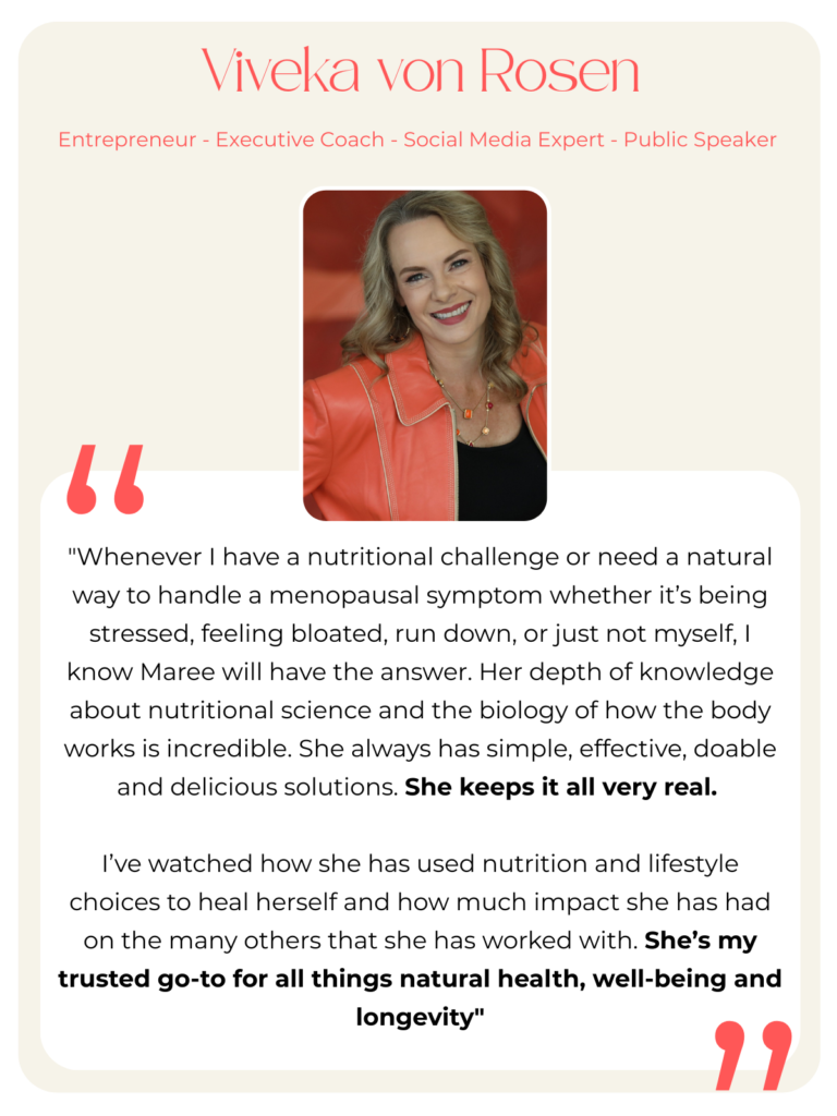 Hi, I’m Maree Mac Guinness, Practicing Clinical Nutritionist at Vitality Health Australia, founder of Menopause Naturally and a real down to earth Aussie girl who is looking to help everyday women enjoy their midlife journey.
