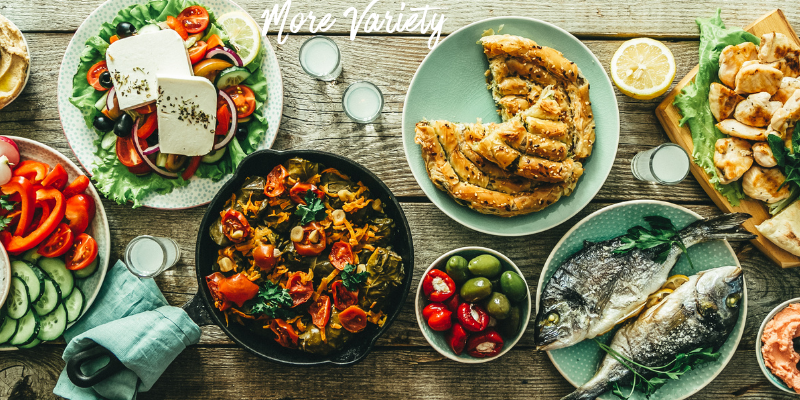 - Have a variety of small plates/bowls at dinner or lunch eg: salmon bites, pickled vegetables, baked vegetables, raw vegetables, steamed vegetables, a variety of salads, roasted chicken pieces, marinated tofu, quality cheeses, seafood, small bowls of minestrone or other soups, cooked legumes eg: dahl curry, healthy grains and any other whole food.