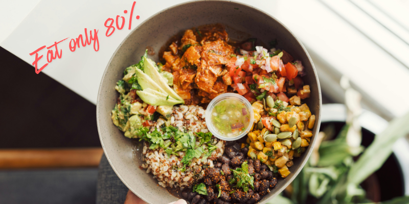 Hara Hachi Bu means “eat until you are about 80% full.”